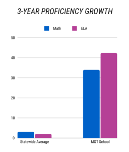 Throughout this 3‐year project, the cohort of 15 turnaround schools supported by MGT —8 of which were in Granite School District —increased raw proficiency from 18 to 26 in ELA and 17 to 22 in math. These improvements constitute an average of a 34% percent increase in proficiency in math and a 42% percent increase in proficiency in ELA over the three‐year period. These improvements also represent 35.8% greater growth in proficiency than the statewide average (1.7% statewide growth).